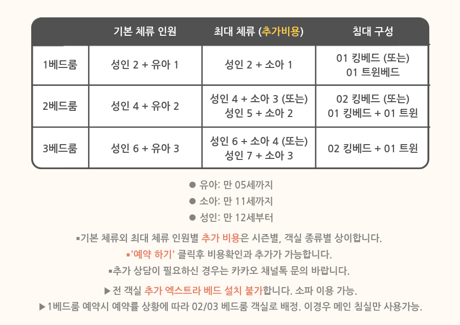 ✳️본 프로모션은 2박부터 가능합니다. 신규 요금이 공지 되면 요금이 인상될수 있습니다. 1박 예약일 경우 별도 문의 바랍니다.